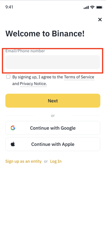 4、输入邮箱地址或手机号码。阅读并同意服务条款和隐私政策。勾选复选框进行确认,然后点击【下一步】。